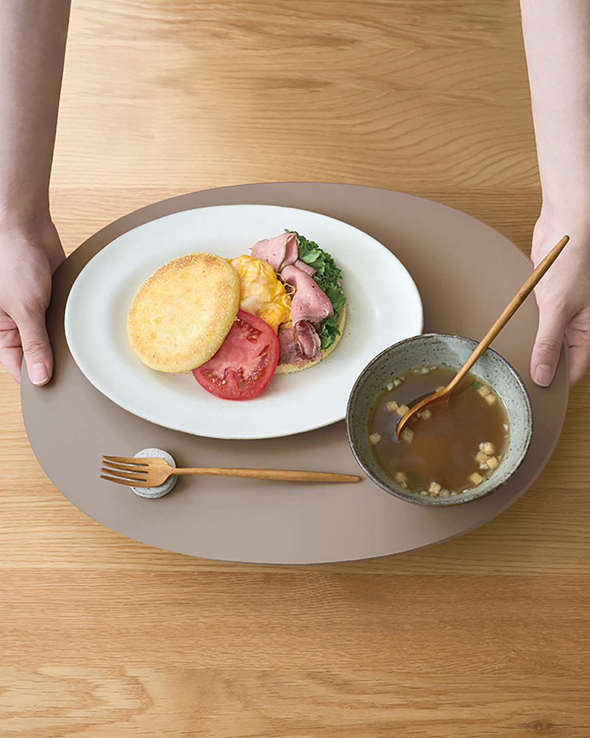 配膳もお食事も、これ1枚。滑りにくいノンスリップ加工と、上質な手触りのリバーシブルトレー。日常の食事からおもてなしまで、豊かな食卓を演出します。ご高齢の方やお子様にも安心です。