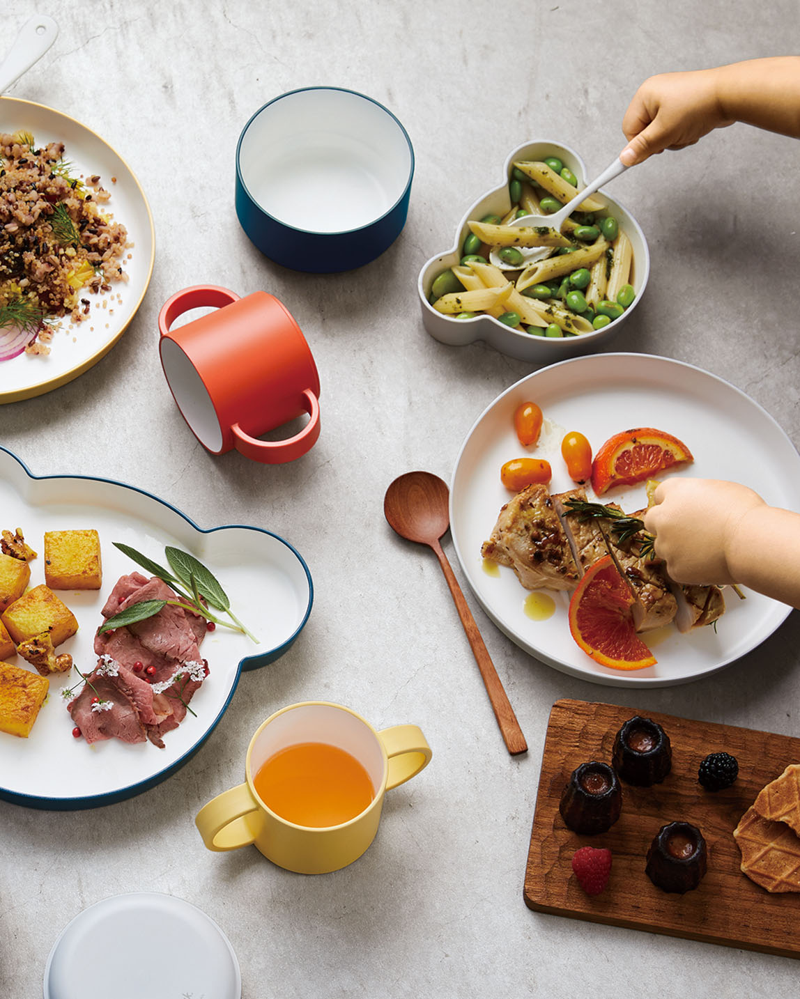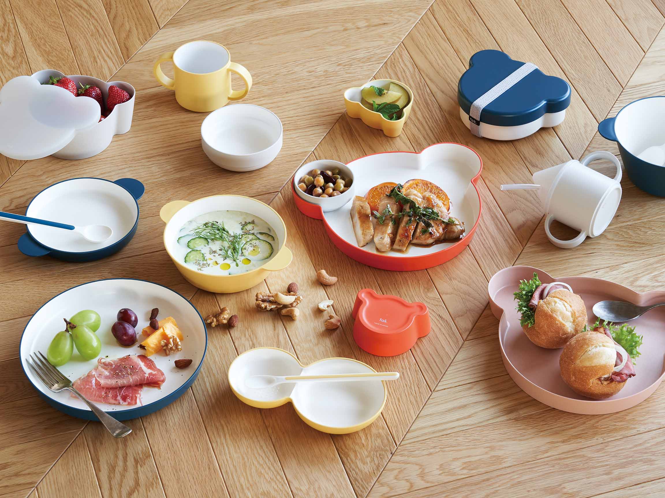 こどもだって大人と同じ、上質な食事を。なめらかな口元と手触り、スープをすくいやすいスプーン、ボウルとプレート。高度な技術で作られた食器で、食事の時間を笑顔で豊かに。