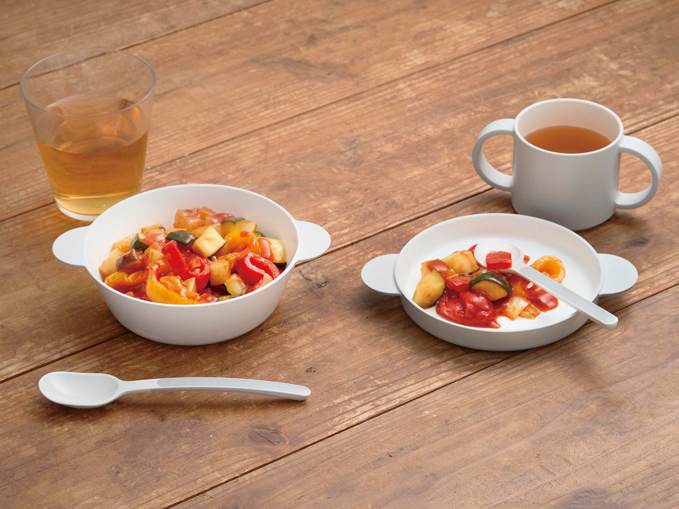 スープや麺類のためのボウル、付け合わせや取り皿、ボウルの蓋にもなるプレート、スープをすくいやすいよう設計されたスプーン。これさえあれば汁物の料理を存分に楽しめます。