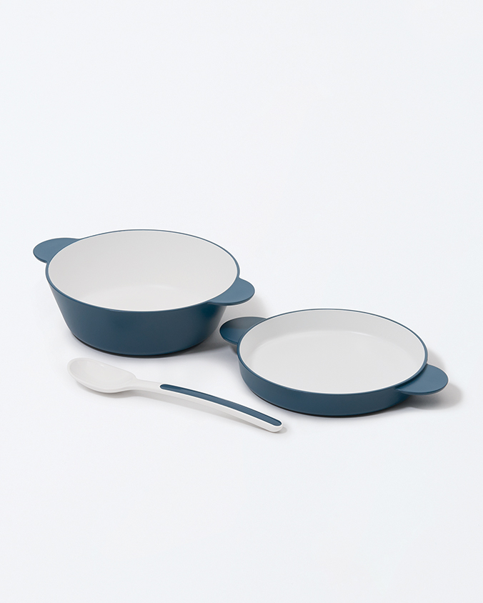 スープや麺類のためのボウル、付け合わせや取り皿、ボウルの蓋にもなるプレート、スープをすくいやすいよう設計されたスプーン。これさえあれば汁物の料理を存分に楽しめます。