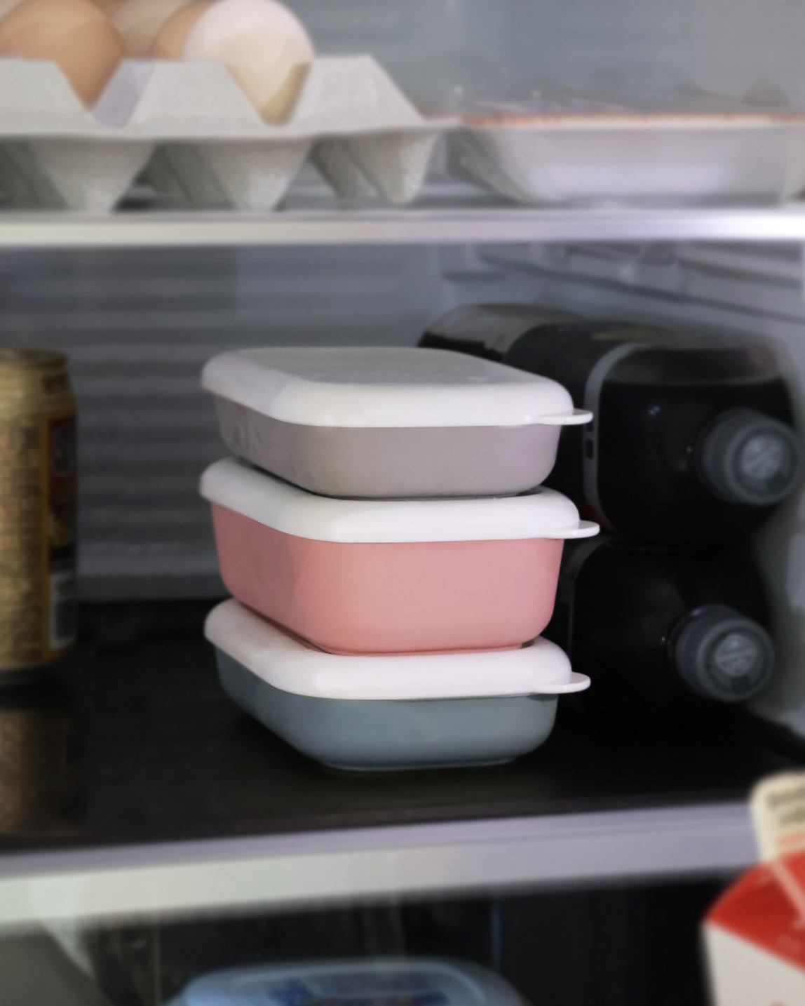 蓋には本体の底とピッタリ重なるよう凹みがついており、冷蔵庫・冷凍庫内でのスタッキング性や見た目の美しさにもこだわっています。