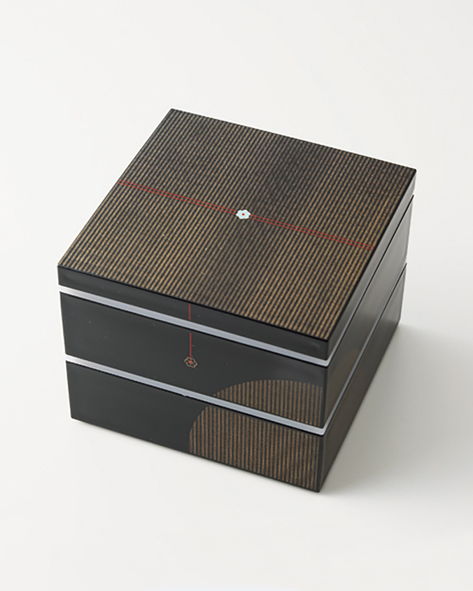 水引きをモチーフとした迎春シリーズ。漆のような落ち着いた塗装と落ち着いたデザインは和洋問わず料理をより一層引き立たせます。黒と朱、ペアでのギフトにもおすすめです。