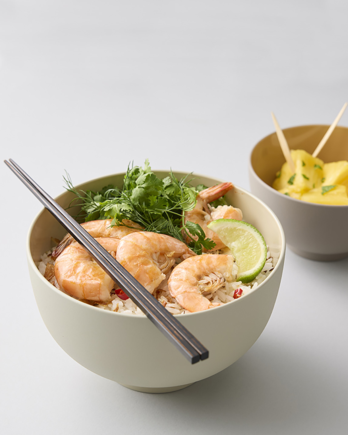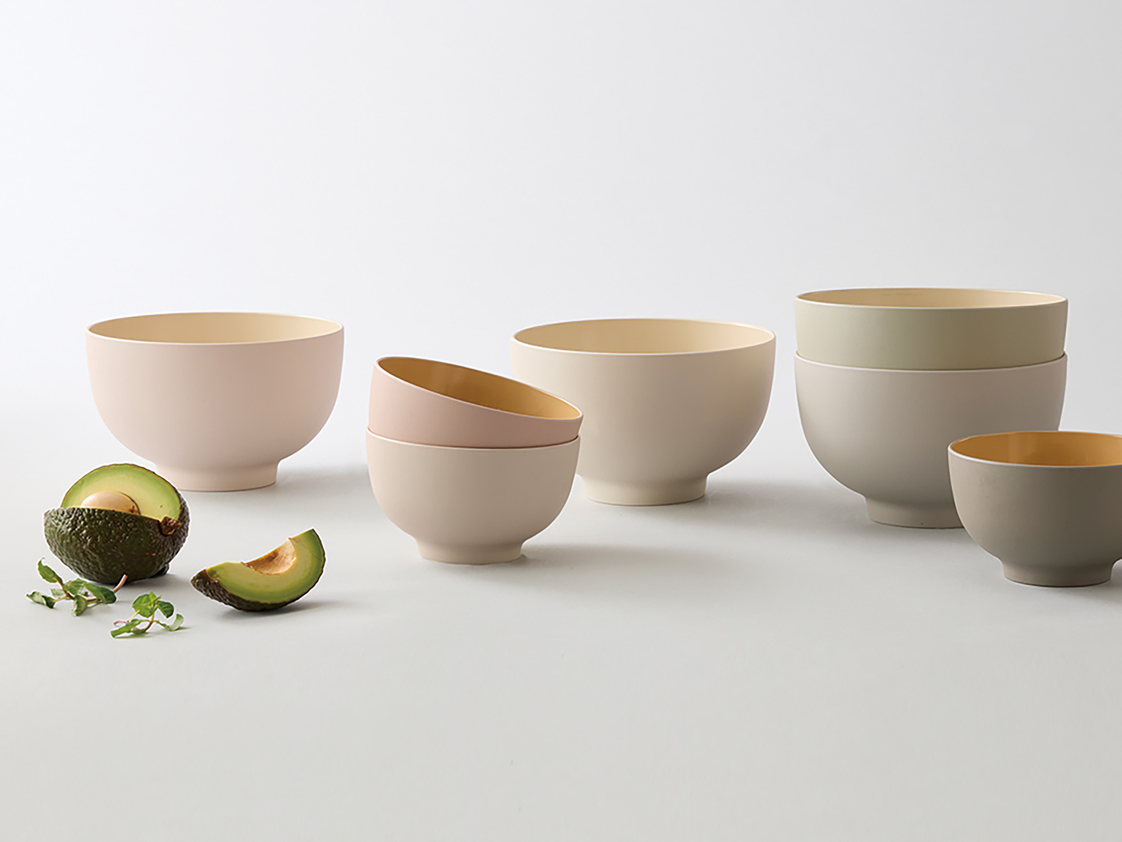 モダンでフォルムが滑らかな汁椀と丼。和洋どちらにも合うニュートラルな形状と、乾漆風の手触りのよさが魅力です。容量たっぷりの丼は、具だくさんのスープなどにもおすすめです。
