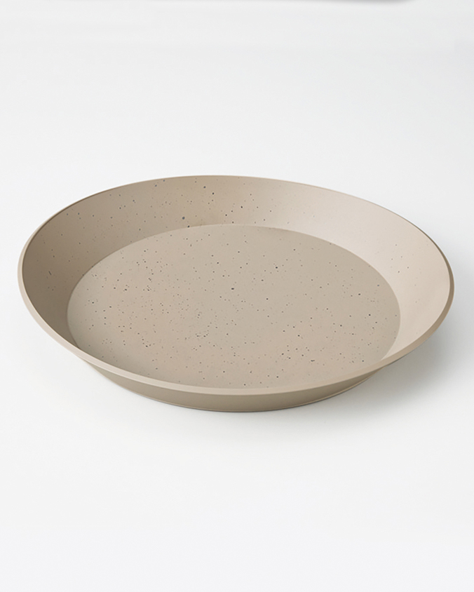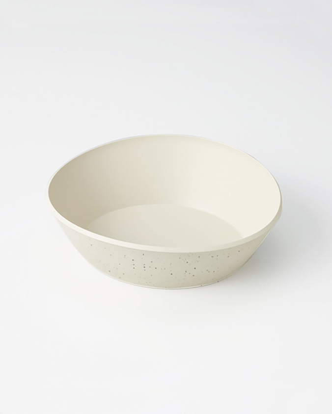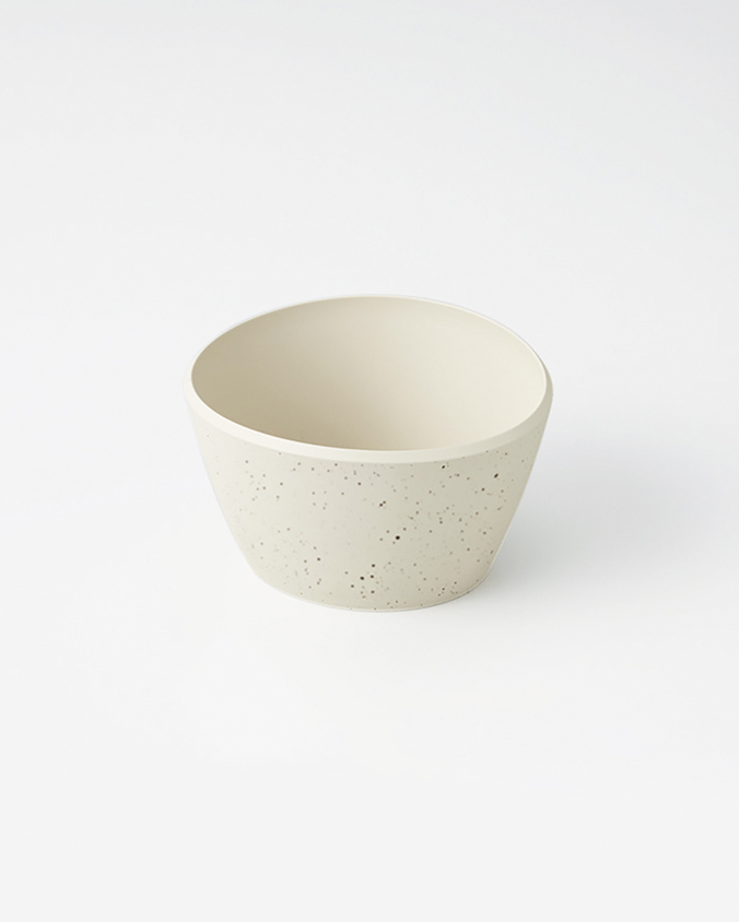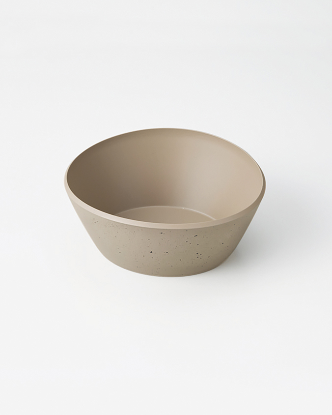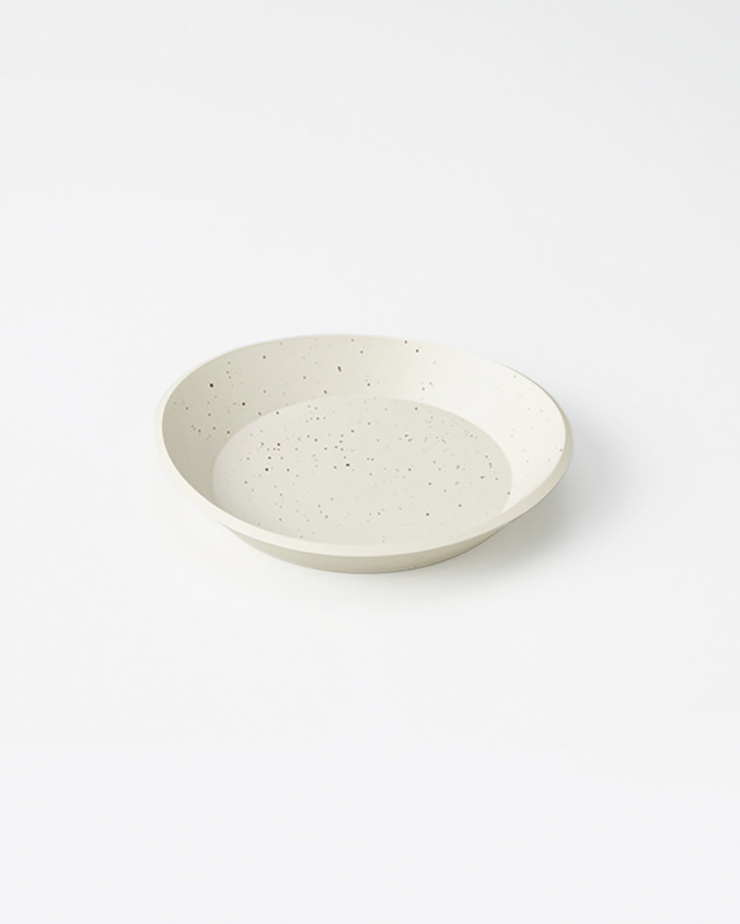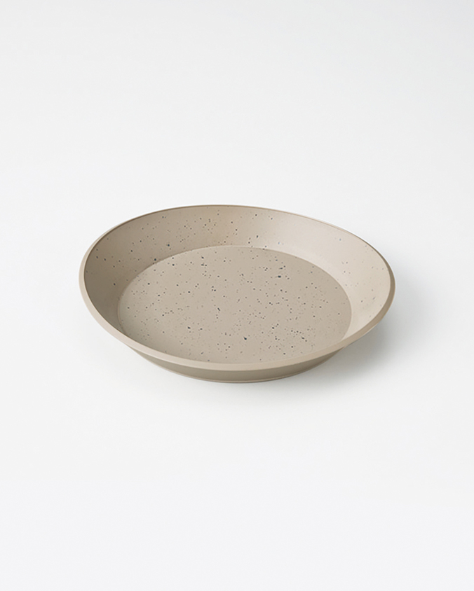 肌触りの良いマットな塗装に石目模様を施したテーブルウェア。水の波紋のようにコンパクトに重なります。一人暮らしからファミリーまでどんな場面でも多用途で使えるアイテムです。