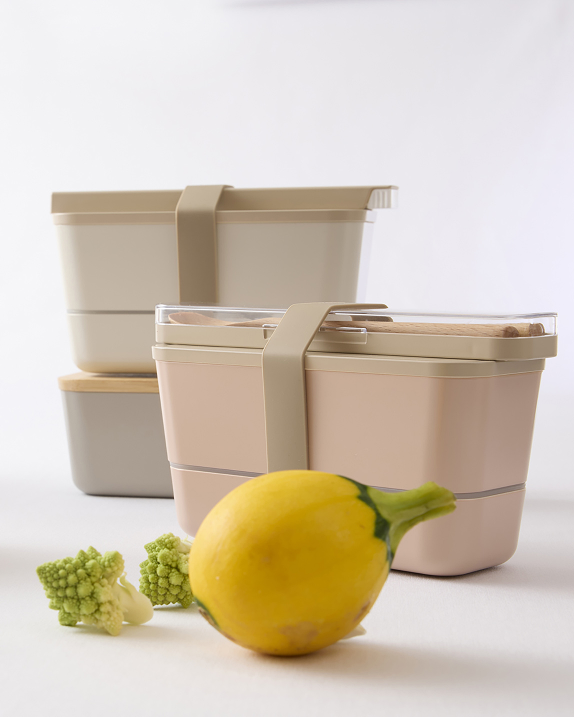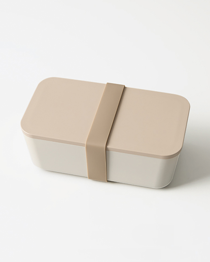フラットな蓋に5色のナチュラルカラーで塗装したランチボックス。シリコン製のランチバンドで密閉度もぐっと高まります。